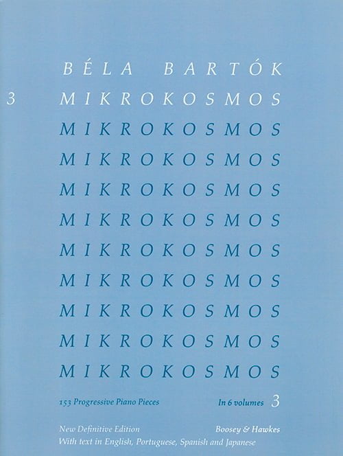 Mikrokosmos de Béla Bartók (en húngaro, Mikrokozmosz) Sz. 107, BB 105 consta de 153 piezas de piano progresivo en seis volúmenes escritos entre 1926 y 1939. Las piezas individuales progresan desde estudios para principiantes muy sencillos y sencillos hasta pantallas técnicas avanzadas muy difíciles, y se utilizan en lecciones modernas de piano y educación. En total, según Bartók, la pieza “aparece como una síntesis de todos los problemas musicales y técnicos que fueron tratados y en algunos casos solo parcialmente resueltos en las obras anteriores de piano”. Los volúmenes uno y dos están dedicados a su hijo Péter, mientras que los volúmenes cinco y seis están concebidos como piezas de concierto profesionalmente ejecutables. Bartók también indicó que estas piezas también se podían tocar en otros instrumentos; Huguette Dreyfus, por ejemplo, ha grabado piezas del Libro 3 al 6 en el clavicordio.
